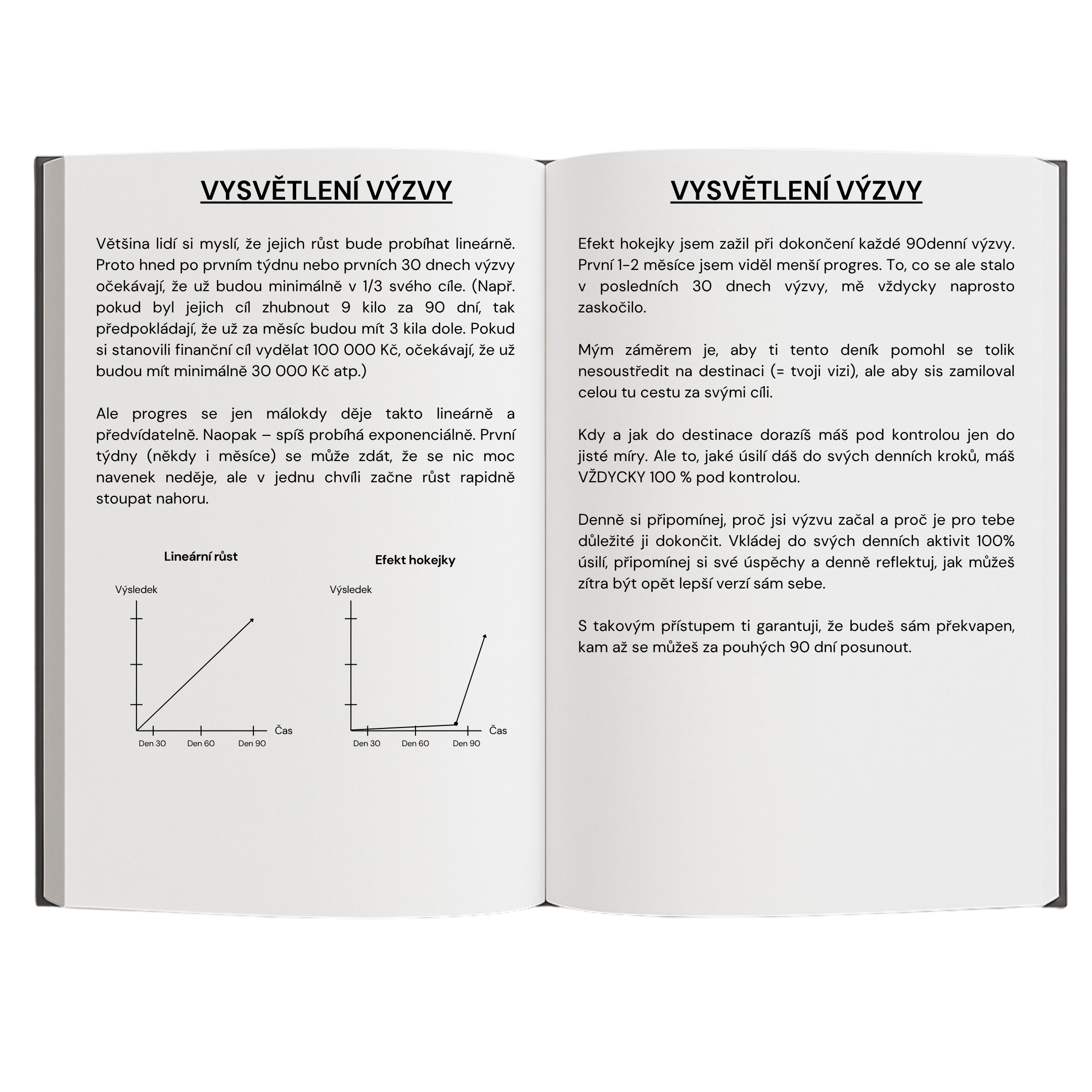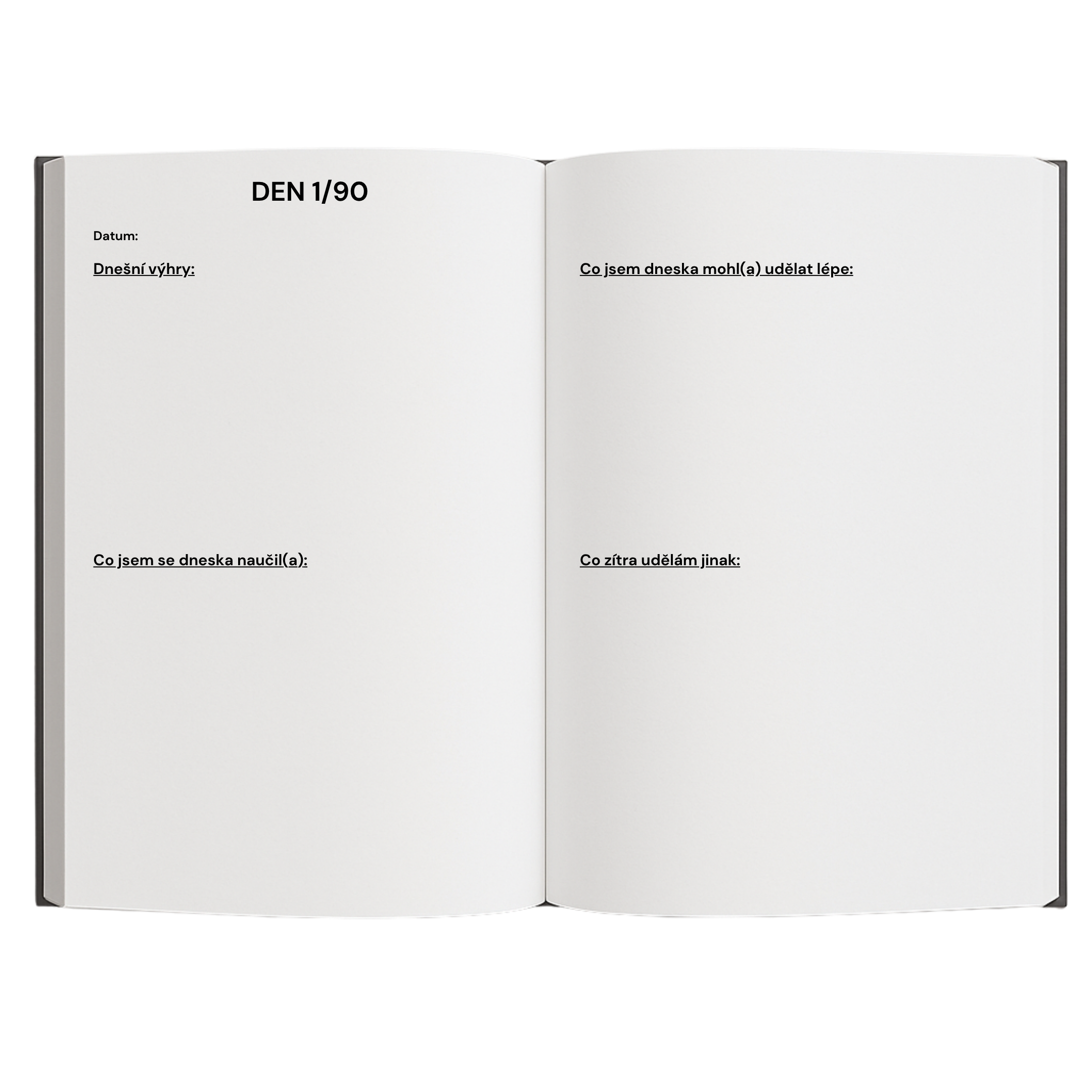 Deník mnohonásobně zvýší šanci, že člověk 90denní výzvu dokončí a vytěží z ní maximum. A přitom se bude každý den těšit, až tento luxusní deník otevře a zaznamená si do něj svůj progres.